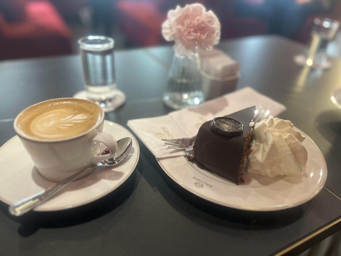 今回の旅で「絶対ここのカフェには行こう!」と計画していて向かったのが、ウィーンの「カフェ ザッハー」。本場のザッハトルテを2人で1ついただきましたが、とても美味しかったです!