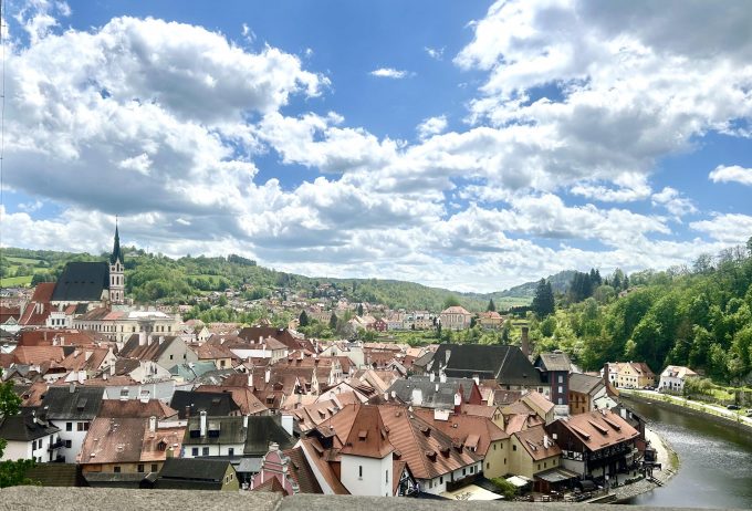 FlixBusに乗って、プラハからチェスキークルムロフへ移動。この日はものすごく風が強く、高所恐怖症の私は足を踏ん張って写真撮影しました。チェスキークルムロフは観光客に人気だと頷けるほど、可愛らしい街でした。