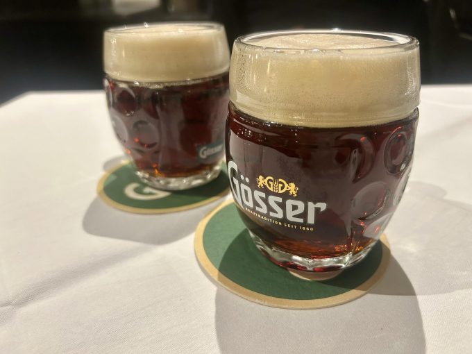 ホーンブルク宮殿(ここは入場してません)の前を通って夕飯のお店「Gosser Bierklinik」へ。こちらで、黒ビール、ウィンナーシュニッツェル、サラダをいただきました。ここも美味しかったです。