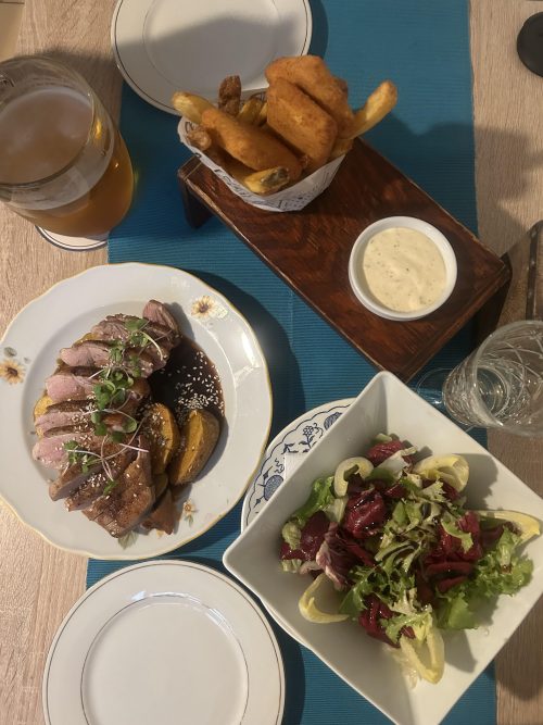 ディナーは、トリップアドバイザーの口コミが良かった「St.martin」へ。メニュー写真が美味しそうだった鴨肉のローストを注文。あとはチコリのサラダとチーズフライ。スパークリングのプロセッコも美味しかったです。