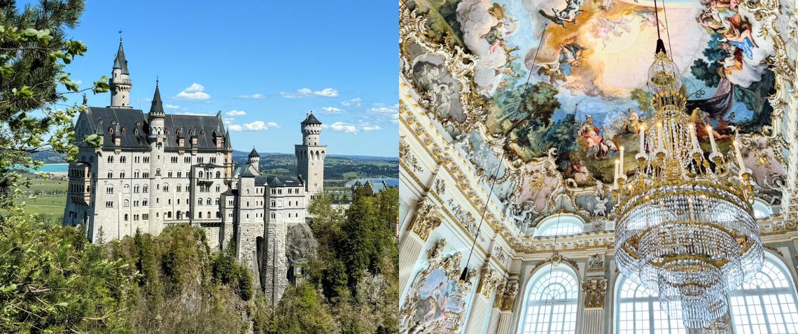 ミュンヘン滞在の2日目には、中世の雰囲気が色濃く残る街、フュッセンを訪れました。ミュンヘンから列車で約2時間の距離にあります。目的は、シンデレラ城のモデルとして知られるノイシュバンシュタイン城。晴天に恵まれ、とても美しい景色を堪能できました。シーズンオフで混雑もなく、のんびりと城を見学することができました。長年憧れていた場所に来られたことに、とても感動しました!シャトルバスで城まで上がったところから見下ろす景色も素晴らしかったです。その後、近くにあるホーエンシュヴァンガウ城もついでに鑑賞しました。