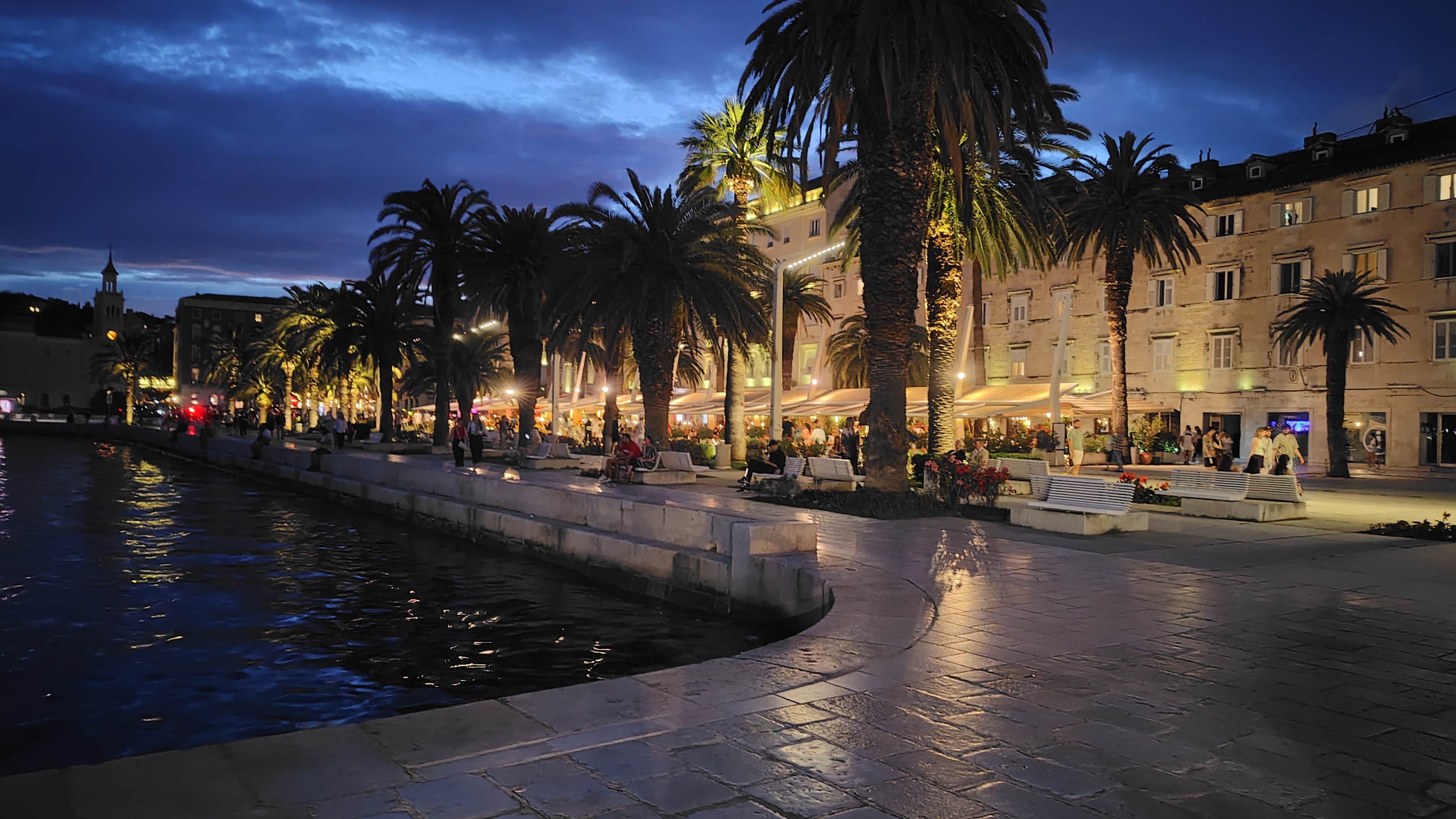 スプリットの海岸沿いの夜景