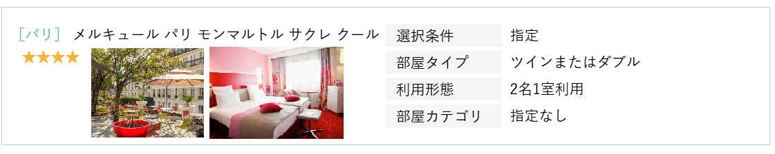 ・ホテルはパリ市内中心部の4つ星「メルキュール パリ モンマルトル サクレ クール」