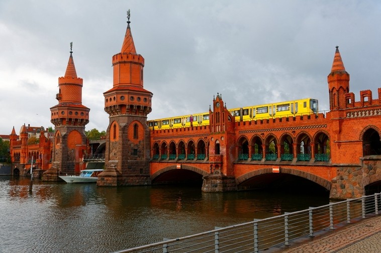 シュプレー川にかかるオーバーバウム橋は、1896年に建設されたゴシック・リヴァイヴァル様式の美しい橋です。赤レンガの2つの塔が特徴的で、「最も美しいベルリンの橋」として地元の人々に愛されています。冷戦時代には東西ベルリンの境界線上にあり、現在は統一の象徴としても重要な意味を持っています。