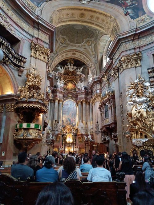 特に国立図書館の建物は素晴らしく、蔵書の多さには圧倒されました。また、ホーフブルク宮殿では、翌日に訪問予定のシェーンブルン宮殿の当日券が行列になると聞いていたため、シェーンブルン宮殿など3つの観光地の入場がフリーになるシシィチケットを購入しました。聖ペーター教会ではタイミング良くゴスペルのコンサートが開催されていて、楽しむことができました。