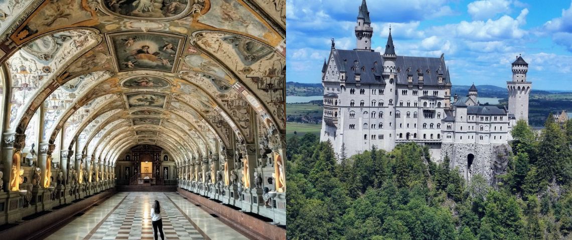 ミュンヘン・レジデンツ(左)、ノイシュバンシュタイン城(右)