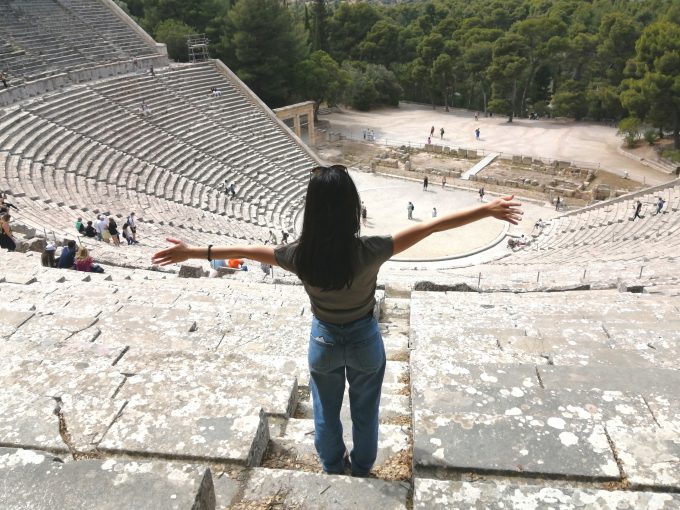 ツアーの締めくくりは、エピダウロス遺跡。こちらの遺跡見学の目玉は、古代劇場。保存状態が非常に良く、当時の雰囲気を感じられる壮大なスケールのままの遺跡を見学できました。また、音響効果も素晴らしく、劇場の一番下でコインを落としたりすると、その音が劇場の一番上まではっきりと聞こえるほどで驚きました。
