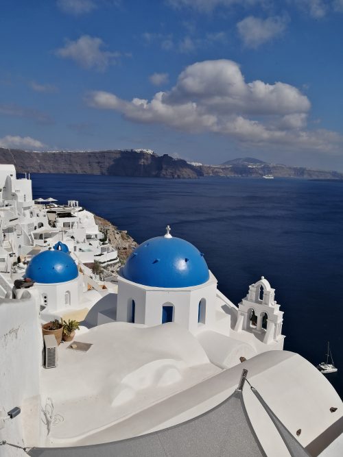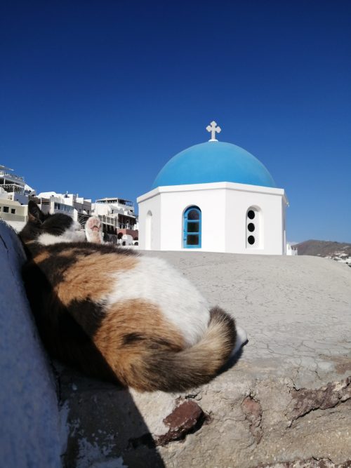 続いて、島で一番大きな街、フィラへと足を運びました。バスのハブにもなっており、イアの村と比べると非常に賑やかな街です。カフェでゆったりとした時間を過ごし、21時頃のフライトでアテネに戻りました。本当は夕日を見たかったのですが、日没開始が20時過ぎと遅かったため、残念ながら断念。日中ケバブなど食べ歩きを楽しんでいたので、この日は夕食は特に食べずに、ゆっくりと休息をとりました。