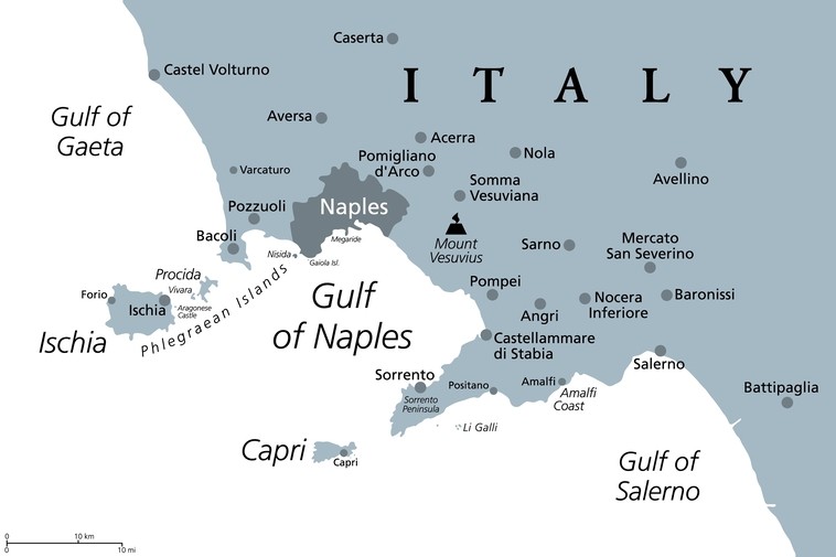 ナポリのカポディキーノ空港に到着後、市内へ移動します。日本からの直行便はありませんが、ローマやミラノ経由でアクセスできます。2025年現在、成田・羽田からローマまでの直行便が復活しており、以前よりもアクセスが良くなっています。