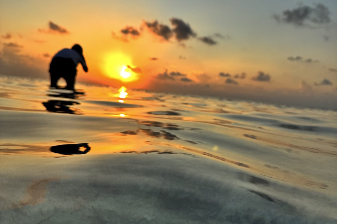 この日は朝3時頃に目が覚めて、お部屋のプールや海を泳いで探索しました。海は浅く、ヴィラのすぐ下にも魚がいて、少し遠くの方まで進むと徐々にサンゴが増え、そこにはさらに多くの魚たちが集まっていました。サンライズの時間には、部屋のミニバーでお酒を飲んだり泳いだり、贅沢な時間でした