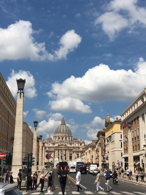 イタリア旅行最終日。帰りの飛行機は22時出発なので丸1日観光できる時間がありました。朝に荷物をまとめチェックアウトをしてから、昨日のリベンジでバチカンの「サン・ピエトロ大聖堂」へ。30分ほど待って中に入ることができました。中は非常に大きい大聖堂でミケランジェロの彫刻や懺悔室があり、神聖な雰囲気が漂っていました。その後歩いて「サンタンジェロ城」へ行き、外観を見学しました。