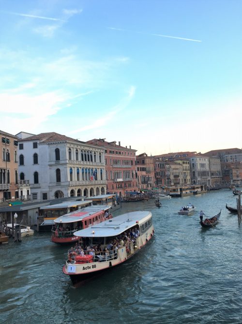 初日は夕方から水上バスに乗り、20分ぐらいかけてサン・マルコ広場近くの港へ。まさに映画にでてくる水の都の風景を目の前にしてテンションが上がりました。「ため息橋」や「サン・マルコ寺院」を眺めながら、夕方の美しいベネチアの景色に心から感動。夜は「リアルト橋」周辺へ。予約していた橋の近くの「Al Gazzettino」で夕食を。Googleでも評価が高く、やはり人気店のようで行列ができていました。こちらで定番イカ墨パスタとホタテ入りのクリームパスタを堪能。本場の料理はとっても美味しかったですが、お値段は日本の感覚からするととても高く感じました(日本が安すぎというのが世界の常識のようですね)。この時期のイタリアは陽が長く、21時くらいまで明るいので1日をとても有効に活用できます。