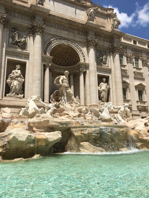 この日は朝から地下鉄でバチカン市国へ。到着すると、「サン・ピエトロ広場」でミサが行われていて大勢の人が集っていました。ミサが終わるまではサン・ピエトロ大聖堂へ入れないことが分かり、駅に戻り周辺のお店や道端のワゴンセールを物色。その後、地下鉄に乗り「スペイン広場」へ向かいました。この日は天気も良く青空で、広場では綺麗な写真を撮ることができました。人気店「Pompi」でティラミスを食べたり、教会で休憩をしたりしながら「トレビの泉」まで歩きました。トレビの泉は想像していたよりもずっと大きく、水は青くて綺麗でした。暑い日でしたが、水辺は涼しかったです。お約束のコイン投げもしましたよ。