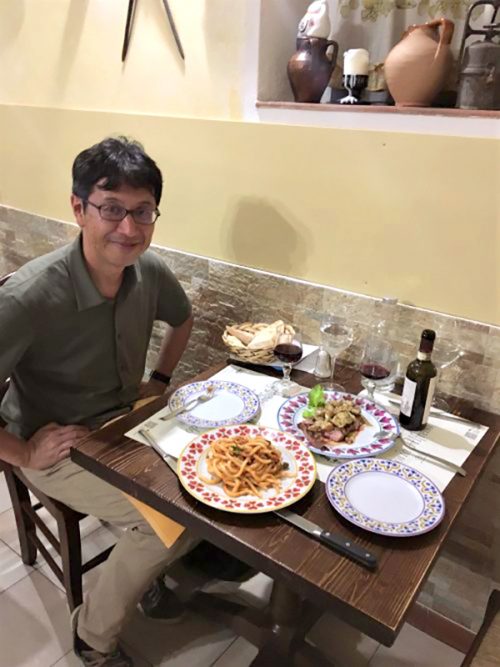 その後、フィレンツェへ戻り、夜ご飯はホテル近くの「Trattoria Enzo e Piero」へ。スペシャルメニューのラザニアと牛肉のスライス、グラスワインを注文し本場のイタリア料理をこちらでも堪能しました。21時ごろには満員でかなり繁盛していました。料金が手頃でとても美味しかったお店です。