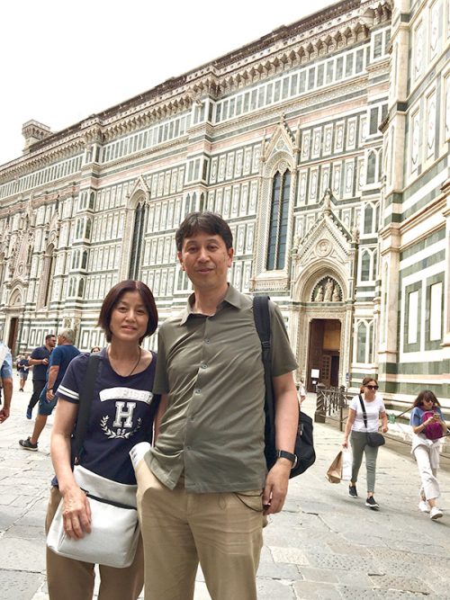 この日は午前中、「ウフィツィ美術館」へ。ルネサンス絵画で有名な美術館です。夫婦ともに芸術には詳しくはないのですが、美術館に行きたいという思いから1か月前に予約してチケットを購入。オーディオ解説をを借りて名画の1つ1つの説明を聞くことができ、作者や絵の背景を知ることで絵の理解が進みました。妻は当初、解説はいらないと言っていましたが、解説を聞きながら繊細で美しい絵を鑑賞しているうちに徐々に引き込まれ、最後は絵の素晴らしさに目覚めたようでありました。