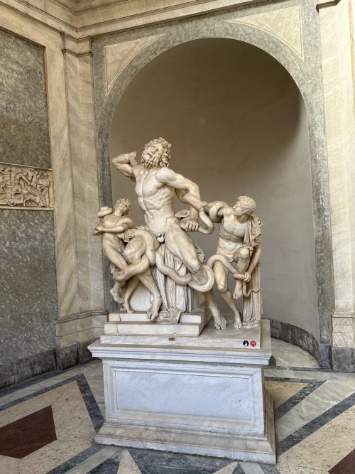 ローマ滞在の2日目は、事前に予約していたバチカン市国ツアーに参加。ガイドは日本語を完璧に話すイタリア人の方で、安心して観光を楽しむことができました。昼食は広場近くのレストランで、リゾットやサンドイッチを堪能。3時間ほどかけて、サンピエトロ大聖堂やシスティーナ礼拝堂やバチカン美術館を見学しました。