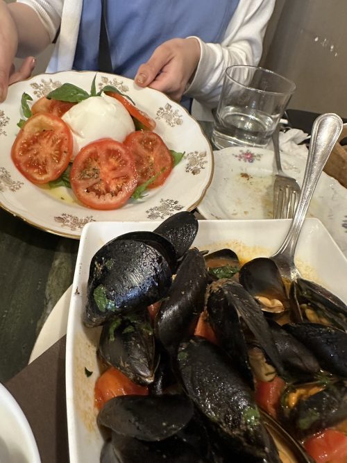 夜はトレビの泉近くのレストランで、新鮮なムール貝などをいただきました。イタリア料理は全て美味しく、特にパスタとムール貝は絶品でした!