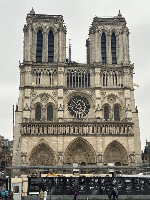 旅の6日目、次の目的地はパリです。朝から静かなベネチアの街を散歩し、朝食を食べた後、広場からバスで空港に向かいました。パリ到着後、オペラ座行きのバスでホテルへと向かい、チェックインを済ませると、さっそくノートルダム寺院を訪れました。まだ火災からの修復作業が続いていましたが、歴史を感じる荘厳な建築でした。