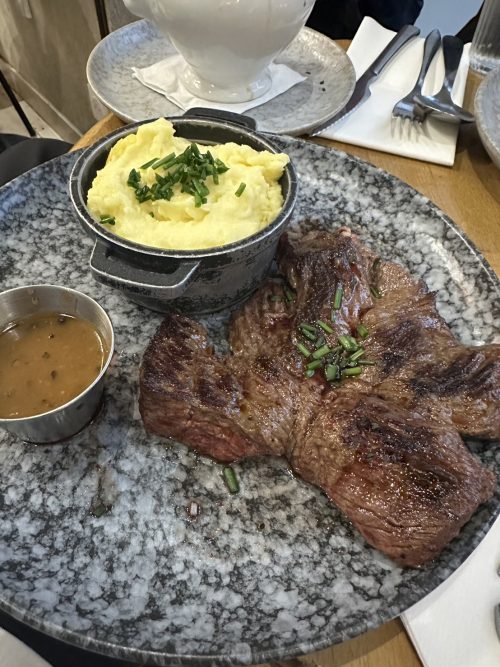 その後、オペラ座近くのレストランTHE familyで、ステーキや魚、オニオングラタンスープを夕食にいただき、ホテルへと戻りました。
