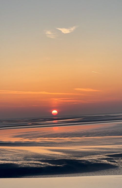 その日の締めくくりは、モンサンミッシェルの頂上から眺めるサンセットです。美しい日が沈むのをゆっくりと眺め、最高の思い出になりました。