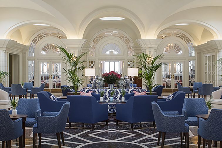 そんな背景から、ホテル内部に足を踏み入れてそのギャップに驚きます。博物館のような迫力ある外観とは異なる英国風の造りに、リゾート風のインテリアを加えた素敵な空間。