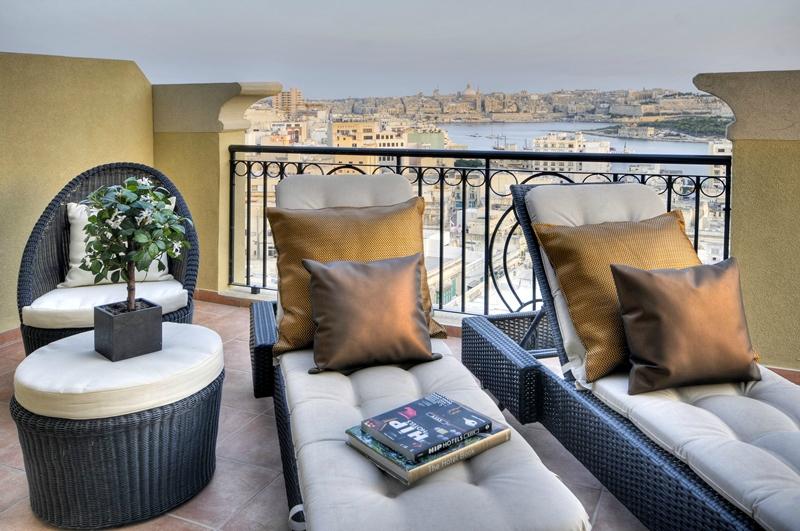 大部分の部屋に椅子やデッキチェアの置かれた眺めの良いテラスがあり、教会やマルタの町並みを見渡せます。高層階ならもちろん地中海も。 特にスイートルームのテラスは広く、1日中テラスでごろごろしていたくなりそう。