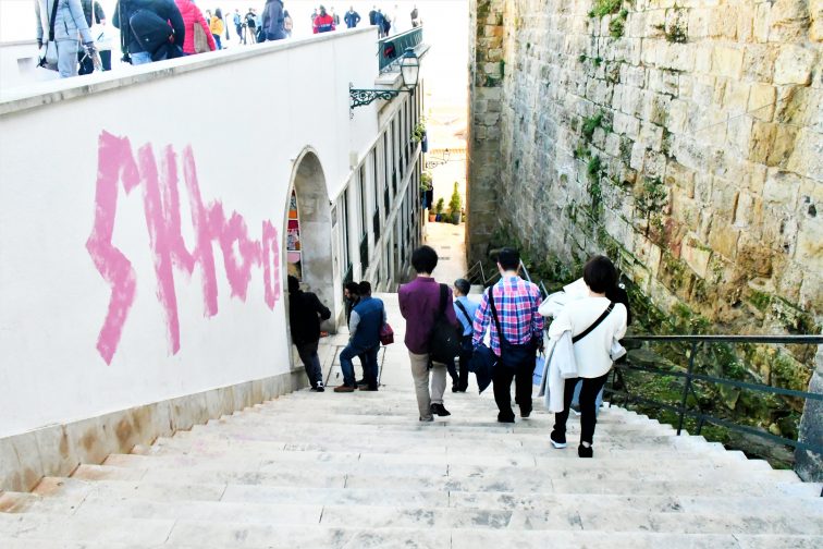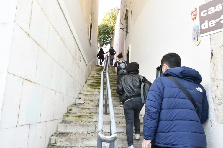 いきなりの道なき道へ突入。まずは急な階段が歓迎してくれました!そりゃあそうですよね。昔は敵から街を守るためにあったであろうサン・ジョルジェ城です。簡単に上がれる道では敵にやられてしまう!