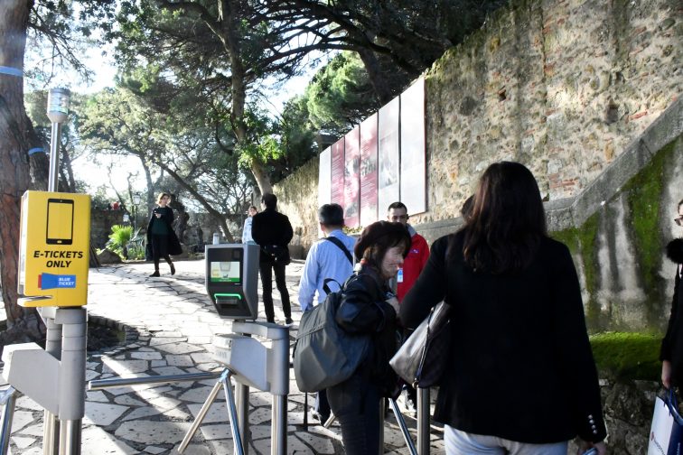 緑豊かなサン・ジョルジェ城の庭ですが・・・よく見てください。石畳はかなり粗め。ヒールがない靴でも革靴などは傷みやすいので、スニーカーなど傷んでも良い靴で挑みましょう。ちなみに筆者はヒールなしの革靴で挑みましたが、この日1日でボロボロになり、ほとんどが石畳を歩いた時の損傷のようです。