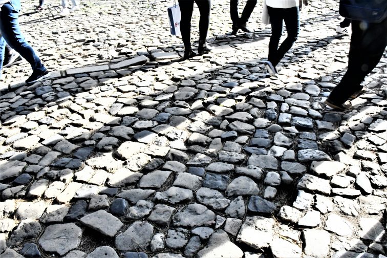 リスボンの石畳の道はかなり粗め。ヒールは厳禁です