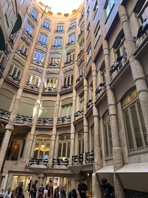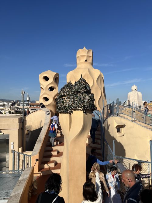 バルセロナには14時半頃に到着。タクシーでホテルに向かい、荷物を置いた後、すぐに見学の予約していたカサ・ミラへ向かいました。100年前の建築物なのに、今でも本当に住んでいる方もいらっしゃるとのこと。とにかく美しく、素晴らしい建物でした。直線が一つも使われていないというところに感動しました。