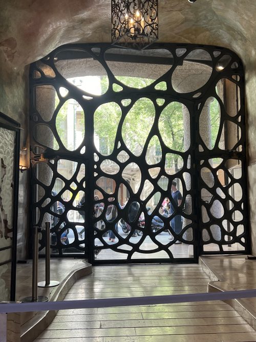 その後、ホテル近くの市場に戻り、オリーブオイルなどのお買い物を済ませた後、カサ・バトリョを訪れました。入場するとドリンクサービスがあり、シャンパンを選んで美味しくいただきました。100年も昔によく考えられたなというほど素晴らしい建築でした。タイルが貼ってある部分が海をイメージしていると伺い、それがとても素晴らしかったです。