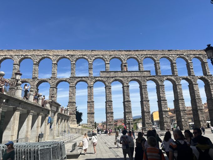 多くの城が点在し、中世の風情を感じさせるトレドは、非常に美しい都市でした。ランチは、セゴビアにある大きなレストランで子豚の丸焼きをいただきましたが、非常に美味しく印象に残っています。その後は、古代ローマ時代の水道橋が残るセゴビアの風景も楽しみました。日本人ガイドの丁寧な説明を聞きながら、両都市の歴史的建造物を巡ることができました。石畳の道は歩きにくく、少々ハードでしたが、各都市の魅力を存分に堪能しました。