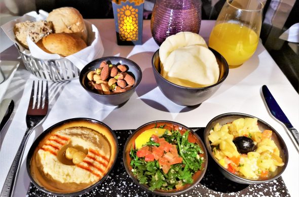 機内食はファーストクラスでしか叶わなかった「好きなものを好きなだけ」を可能にしたことも画期的。豊富なメニューから選べる料理は豪華かつカタール航空らしい中東料理も含まれています。航空会社によっては、Qスイートより下のファーストクラスが多数あるほどのレベルです。