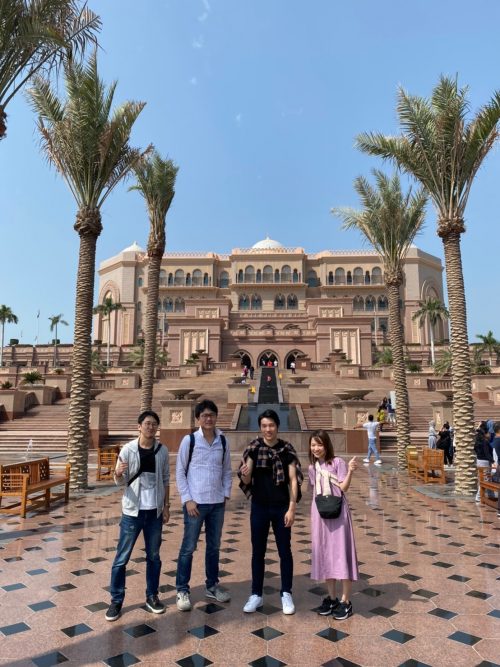 翌日も現地駐在の友人ガイドのもと、ドバイから高速バスで2時間弱で移動しアブダビへ。ヨーロッパ3ヵ国も良かったのですが、最終日に訪れたアブダビの観光地がアラジンの世界そのもので圧倒されました!ドバイとは違い、THE中東という景色はこの旅で一番の思い出に。エミレーツパレス、モスク(Sheikh Zayed Grand Mosque)の景色は、時間ごとに違う美しさを表現するため、いつまででも見ていられる景色でした。大統領官邸など本当に素晴らしかったです。