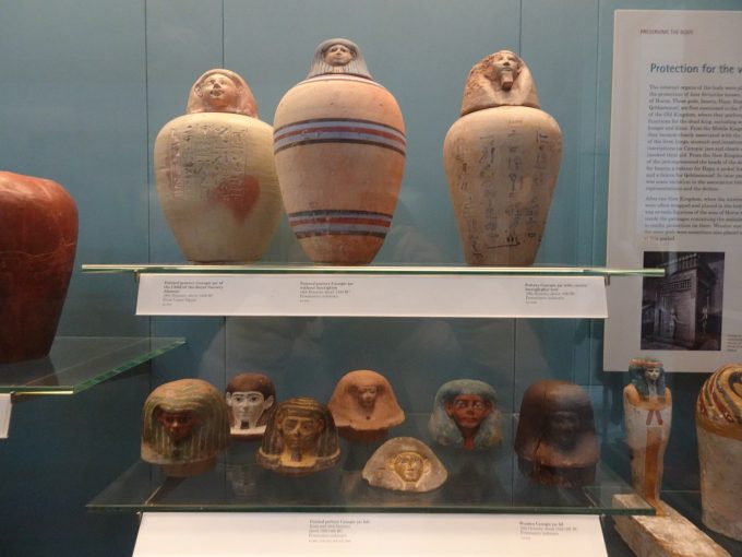 前日短時間では見きれなかった館内全体をじっくり巡りました。エジプトが好きで日本でも関連の展示にはよく出向くので、やはりエジプトの展示が一番楽しめました。特に、ミイラを作る際に取り出した臓器を入れる、マトリョーシカのような形のカノプス壺が好きなんです。猫や鳥など動物の顔がモチーフになっていて、とても希少なものですが、こちらで一挙に見ることができ、とても楽しかったです。