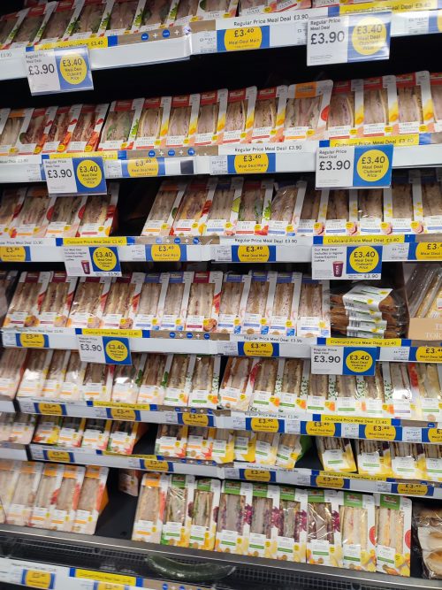 この日の夕食には、夜遅くまで営業しているスーパーTESCOのミールセットを購入しました。ホテル最寄りのラッセルスクエア駅の向かいにあります。メイン、スナック、ドリンクがセットで3.9ポンド(約800円)ととてもリーズナブル。メニューは豊富で、私は小エビのサラダ、大豆のミートボール、お水を選びました。ただ、注意したいのは、カトラリーはついていないこと。どこにも売っていなくて、カトラリーのために隣のカフェでスープを購入することになり、結局高くついてしまいました。プラスチックフリーが進んでいるので、日本から持参していった方がいいかもしれません。
