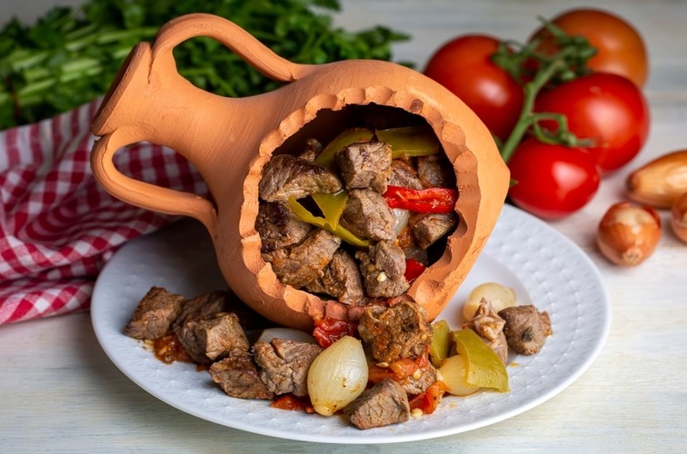 カッパドキアでは、トルコ料理の中でも特に地方色豊かな料理を楽しめます。代表的なのが「テスティ・ケバブ」で、壺の中に肉と野菜を入れて密閉し、オーブンでじっくり煮込んだ料理です。提供時には壺を割って中身を取り出すパフォーマンスも楽しめ、観光客に大人気です。