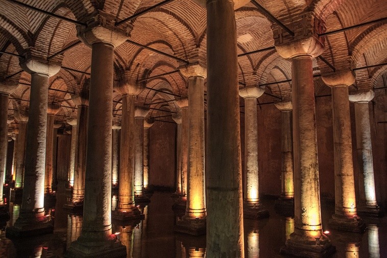 地下宮殿は、ビザンツ時代に造られた巨大な地下貯水池です。336本もの大理石の柱が立ち並ぶ神秘的な空間は、まるで地下の大聖堂のような雰囲気を醸し出しています。