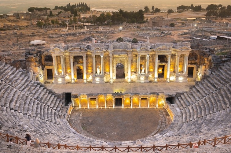 ヒエラポリス遺跡(所要時間:1.5〜2時間) パムッカレの上部に広がる古代ローマ都市の遺跡。保存状態の良い円形劇場や温泉遺跡などが見られます。