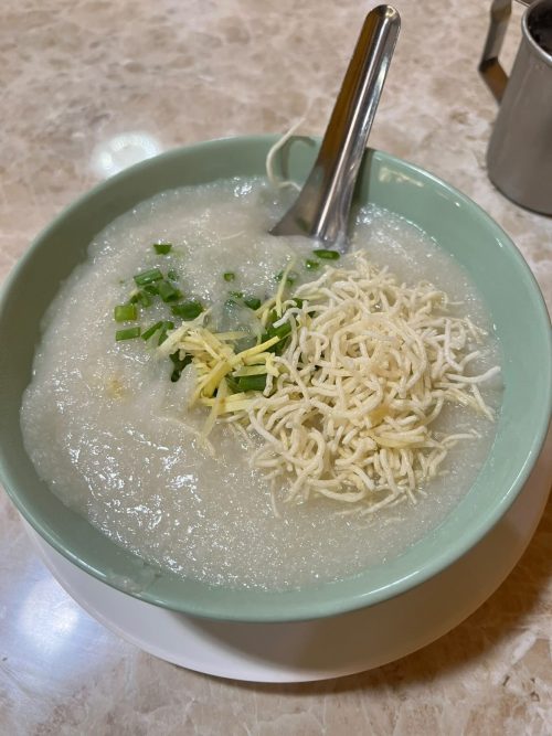 また、タイ料理は基本的に油を使用しており、味が濃いものが多いです。ただ、毎食同じようなものばかり食べ続けるのは胃にも負担がかかりやすいですよね。だからこそ紹介したいのが、タイのお粥「ジョーク」です。微粒の米粒と卵や肉団子が入った優しい味付けで、刻み生姜などをトッピングして食べるのが一般的です。タイでは朝ごはんとしても馴染み深く、専門の屋台も街中で見かけられます。