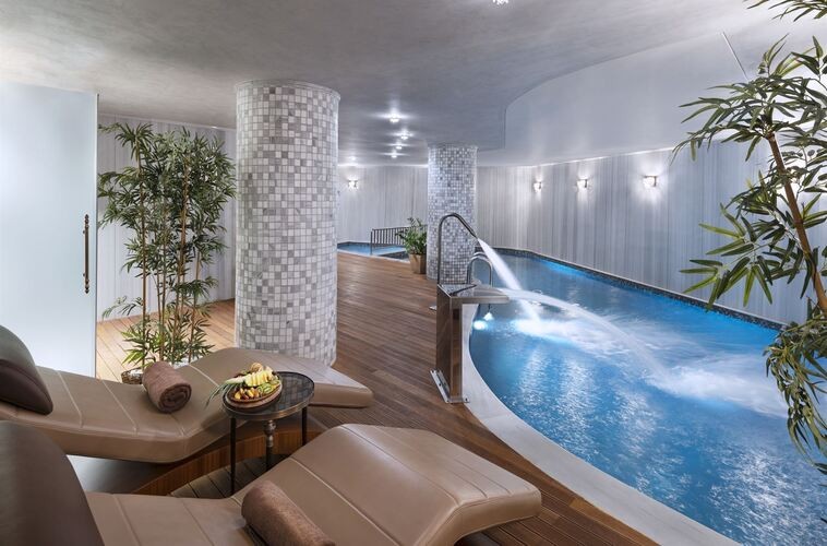 最大の特徴は、広々とした敷地と充実した施設です。屋外プール、屋内プール、フィットネスセンター、スパ、テニスコートまで備えており、ホテル内だけでも十分に楽しめます。冬季は屋内プールとスパが活躍し、特にトルコ式ハマムでのマッサージは体の芯から温まると好評です。