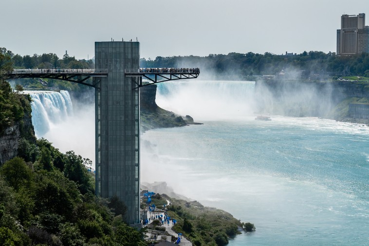 ナイアガラの滝 アメリカ側では、滝により近い距離から迫力を感じることができます。ナイアガラフォールズ州立公園内には多数の展望ポイントがあります。