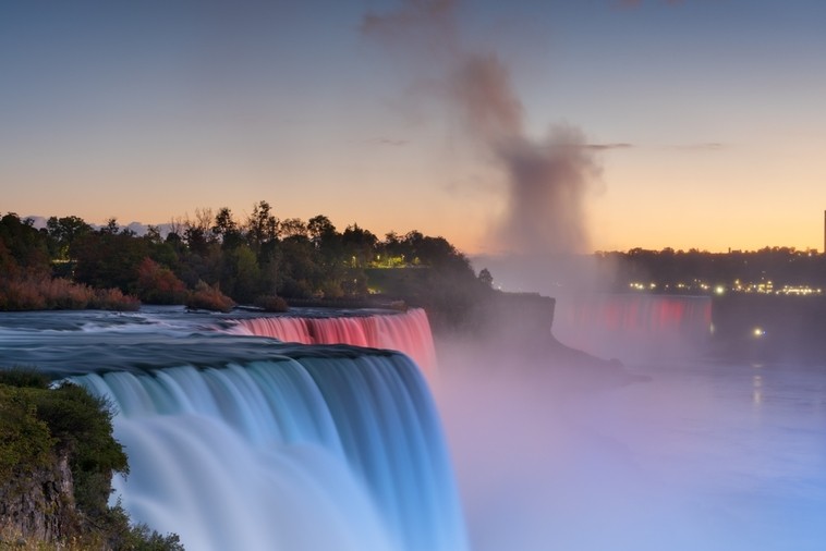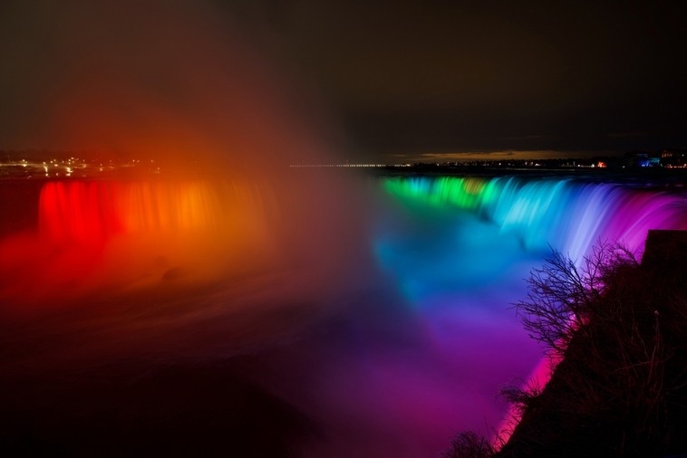 11月から1月にかけて開催されるウィンターフェスティバルでは、ナイアガラの滝が色とりどりのライトで照らされます。2025年のイルミネーションは11月23日から1月31日まで開催予定で、毎日午後5時から10時まで滝がライトアップされます。