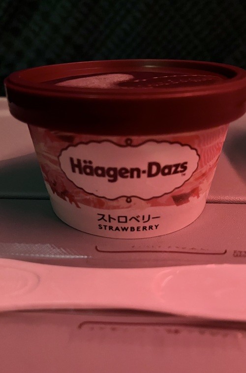 ラタトゥイユのようなトマトベースのペンネの上に、焼き鮭がどんっと豪快に乗っていました。いや・・・サーモン美味しい!!(笑)トマトソースも美味しいし、鮭は脂がのっていて、とても好みでした。副菜には蕎麦、ロールパン、クラッカーとチーズが付いてきました。やはりシンガポール航空の機内食はとても美味しいです。食後にはハーゲンダッツのストロベリー!帰りの便はチョコレート味で、飽きないように配慮してくれているのかなと地味に感動しましたよ。