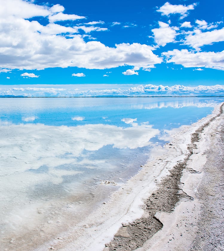 季節の境目や雨が降った後に見られる鏡張りの絶景。塩平原に雨が降ると辺り一面に水が広がり、そこに真っ青な空や雲が映し出され、まるでウユニ塩湖のように幻想的な光景が現れます。晴れていて風がなく、降った雨が残っていることが、この絶景が生まれる条件です。ソルトレイクシティから1時間半とアクセスも良く、高山病の心配もありません。北米のウユニ塩湖で、一生に一度は見たい神秘の光景をご堪能ください。