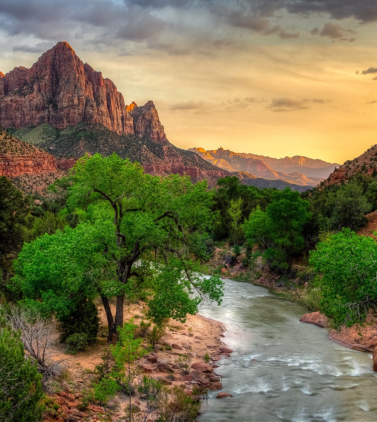 切り立った巨大な岩壁に囲まれた壮大な景色を舞台に様々なトレッキングルートを楽しめるユタ州最大の国立公園。ザイオンとはエルサレムにあるシオンの丘のことを指し、ヘブライ語で「隠れ家」「聖域」という意味。連なる3つの岩を3人の司教になぞらえるなど、公園内には旧約聖書が由来となった名所が点在しています。バージン川が長い年月をかけて造り出した深い渓谷を谷底から見上げれば、神々しささえも感じられるでしょう。