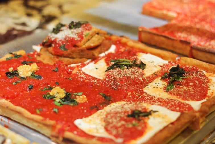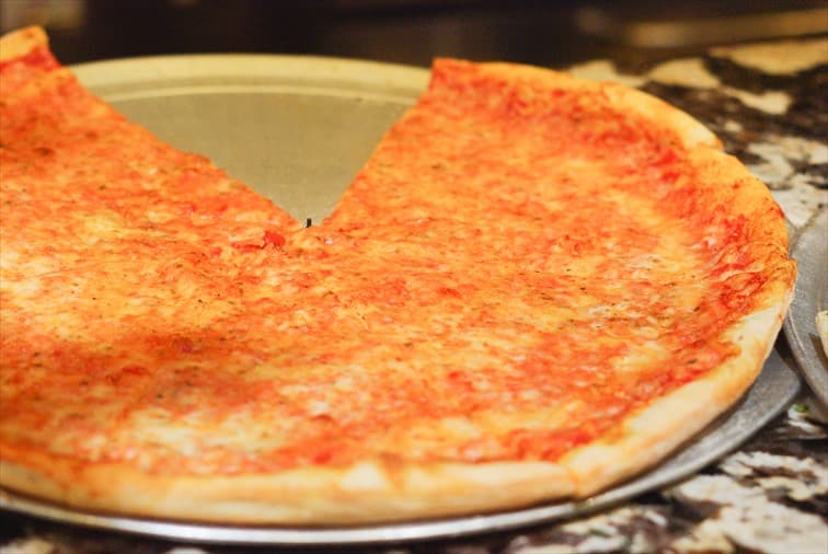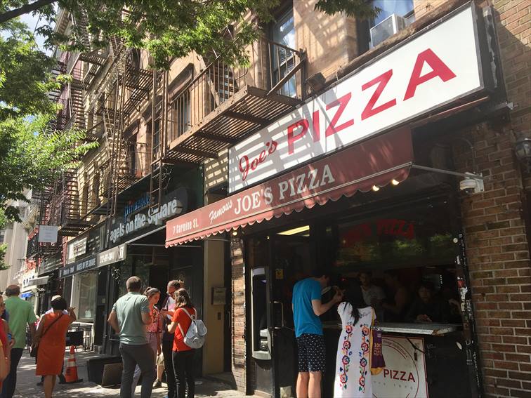 ニューヨーカーはピザが大好き!誕生日会などのパーティーなどでは必ずピザが振る舞われます。特別な日だけでなく、平日のランチやディナーにも大活躍。また、飲んだ夜の帰り道に一枚のピザでお腹を満たすという話はニューヨーカーの間では定番。まるで日本のラーメンのようですね♪ニューヨークには数多くあるピザ屋ですが、その中でも人気の高い店がグリニッチビレッジの「ジョーズピザ」。カウンターで注文と支払いを済ませた後、窓側の椅子で食べても、立ち食いをしても、目の前の公園で食べてもオッケー!一人でも気軽に立ち寄ることができます。スライスで一枚から注文できるのも嬉しいですね♪