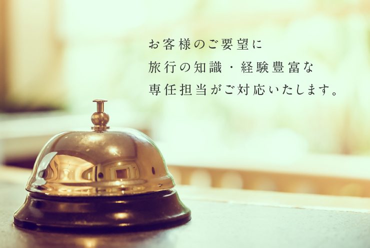 ツアーを元にアレンジいただく「セミオーダー旅行」、完全な自由オーダーの「オーダーメイド旅行」も承っております。専任担当がお客様のご要望&ご予算に合わせて迅速にご提案いたします。大切な方とのアニバーサリー旅行、ビジネス出張・ミーティング旅行など、あらゆる旅行形態にご対応可能です。お気軽にお問合わせください。