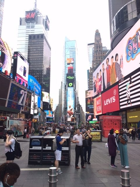 ホテルにチェックインをして、長男の職場へ。その後孫とロックフェラーセンターにあるニューヨークの老舗おもちゃ屋 FAOシュワルツ(FAO Schwarz)へ行きました。たくさんのおもちゃに囲まれ孫も楽しそうでした。その後グランドセントラル駅へ行き、駅中のフードコートで食事を済ませました。グランドセントラルの駅の中で、ちょうどどなたか結婚式をされていたのが印象的でした。次にタイムズスクエアへ移動しました。テレビでよく見る場所!ニューヨークらしい光景を楽しむことができました。