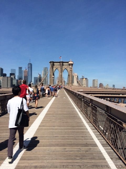 2日目はまずブルックリンへ行きカフェでゆっくりし、それから橋を渡ってマンハッタンへ。良く晴れた青空の下、ニューヨークの街を一望しながら橋を歩くのは大変気持ち良かったです。自由の女神も見えましたよ!ブルックリン橋を歩いて渡ったことは、この旅の中で最も印象に残った景色です。ブルックリン側からマンハッタンを眺めながら橋を渡るのがおすすめです!